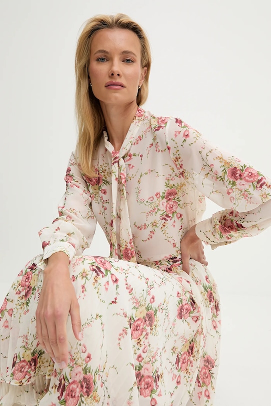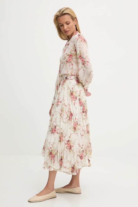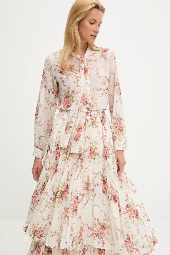 Рубашка и юбка из коллекции Answear LAB, выполненные из тонкой, неэластичной ткани. Полиэстер обеспечивает повышенную устойчивость к сминанию. - Прямой верх и расклешенный низ. - Декоративная шнуровка спереди. - Мягкие манжеты с застежкой на пуговицы. - Удобная застежка на кнопки позволяет легко надевать и снимать. - Высокая талия с резинкой предотвращает скольжение во время движения. - Модель на подкладке. - Длина рукава: 62 см. - Длина: 65 см. - Ширина под мышками: 50 см. - Ширина талии: 32 см. - Длина юбки: 80 см. - Размеры указаны для размера: S.