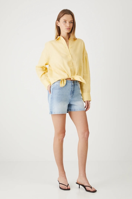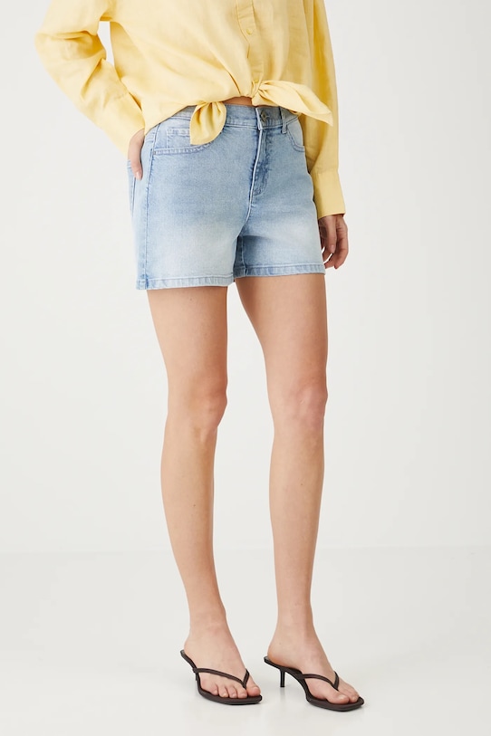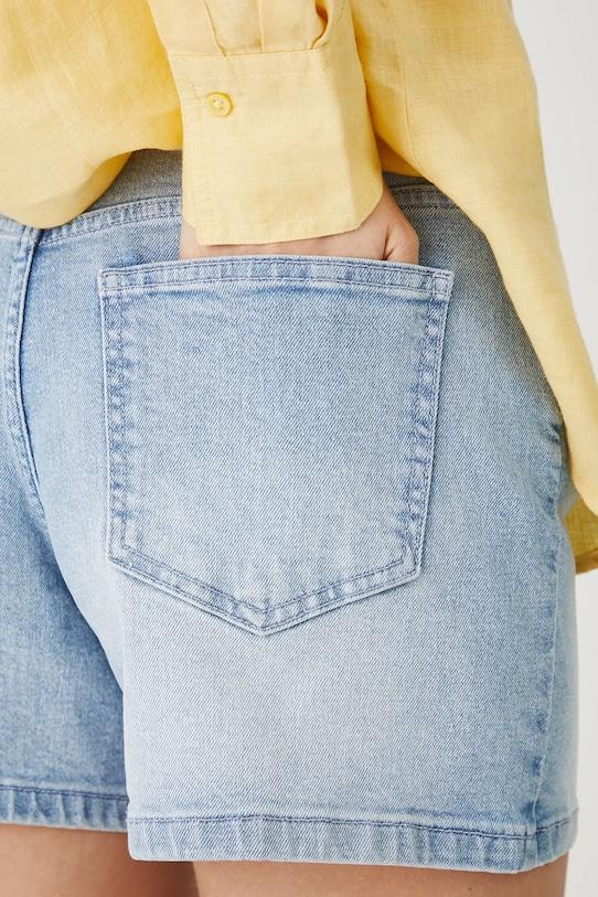 Шорты из коллекции Medicine. Изготовлены из стираного денима. - Материал с сертификатом OEKO-TEX Standard 100 гарантирует, что текстильные изделия, на которых он нанесен, не содержат вредных и потенциально опасных для человека и окружающей среды веществ. - Приталенный крой. - Модель со стандартной талией, застежкой на пуговицы и молнию. - Накладные карманы. - Декоративно выстиранный деним. - Ширина талии: 38,5 см. - Ширина бедер: 49 см. - Высота талии: 26 см. - Ширина штанины внизу: 30 см. - Длина по внутреннему шву: 10 см. - Размеры указаны для размера: S.