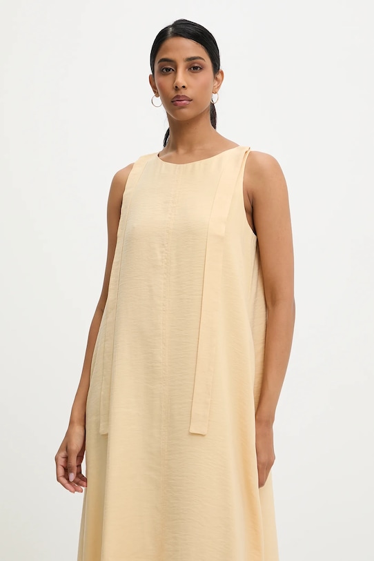 Платье из коллекции Answear.LAB, выполненное из тонкой, неэластичной ткани. Эта модель выполнена из исключительно комфортного, дышащего хлопкового материала. - Трапециевидный разрез. - Дополнительный слой материала в виде подкладки. - Классический круглый вырез. - Нерегулируемые лямки не соскальзывают с плеч, обеспечивая комфорт во время занятий. - Застегивается на пуговицы сзади. - Декоративная окантовка по вырезу горловины. - Два боковых накладных кармана. - Гладкая ткань. - Длина: 134 см. - Ширина под мышками: 44 см. - Размеры указаны для размера: S.