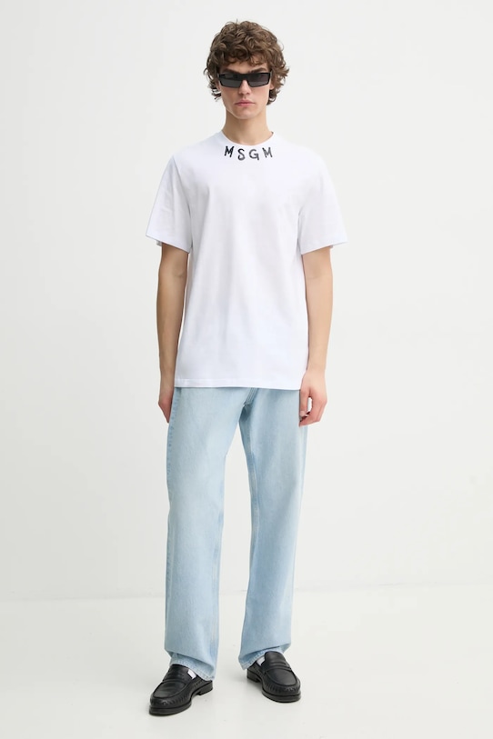Эта футболка из коллекции MSGM выполнена из принтованного трикотажного полотна. Она изготовлена из исключительно комфортного хлопкового материала. - Простой дизайн, не стесняющий движений. - Классический круглый вырез. - Тонкий, эластичный трикотаж. - Длина: 77 см. - Ширина под мышками: 56 см. - Размеры указаны для размера: M.