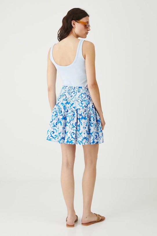 Юбка из коллекции «Медицина». Расклешенный фасон из узорчатой ткани. - Материал с сертификатом OEKO-TEX Standard 100 гарантирует, что текстильные изделия, на которых он нанесен, не содержат вредных и потенциально опасных для человека и окружающей среды веществ. - Расклешенный крой. - Повышенное состояние. - Широкий эластичный пояс. - Модель с декоративной оборкой. - Узорчатая ткань. - Цветочный узор. - Модель мини-длины. - Ширина талии (до растягивания): 31 см. - Ширина талии (после растяжения): 58 см. - Длина: 45 см. - Размеры указаны для размера: S.