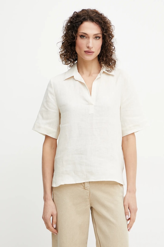 Эта блузка из коллекции Marella выполнена из тонкой, неэластичной ткани. Модель выполнена из исключительно дышащего, высококачественного материала. - Простой дизайн, не стесняющий движений. - Острый вырез. - Короткий рукав. - Модель с воротником. - Длина: 60 см. - Ширина под мышками: 47 см. - Размеры указаны для размера: 36.