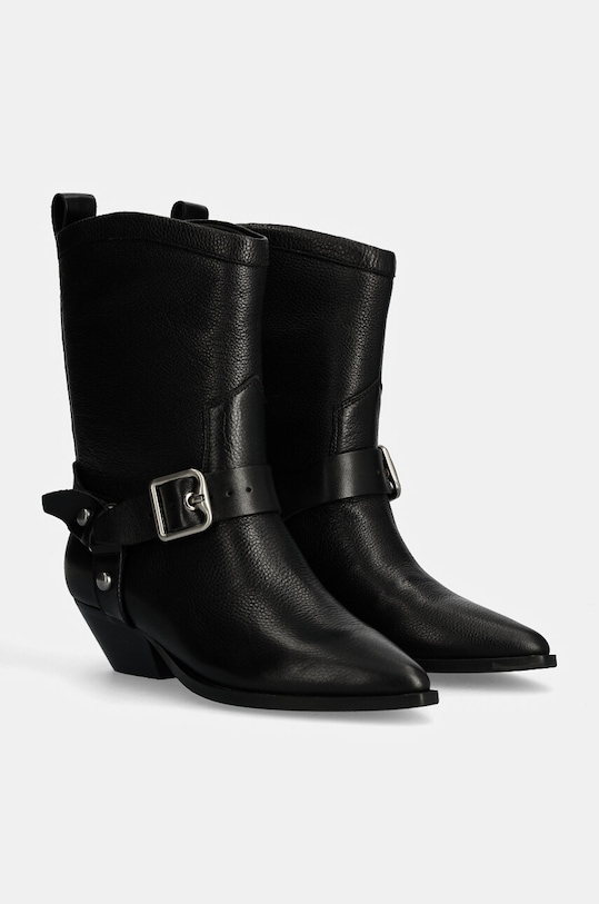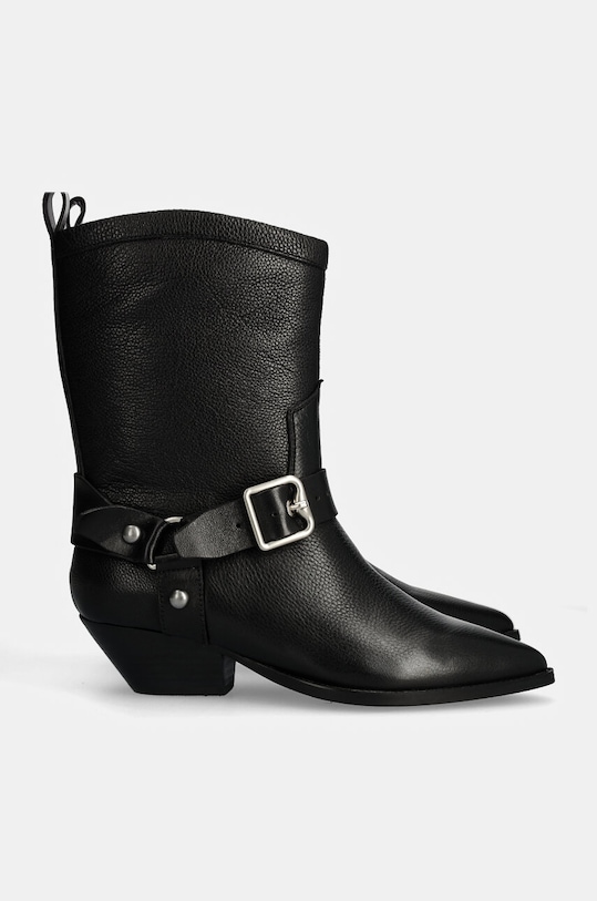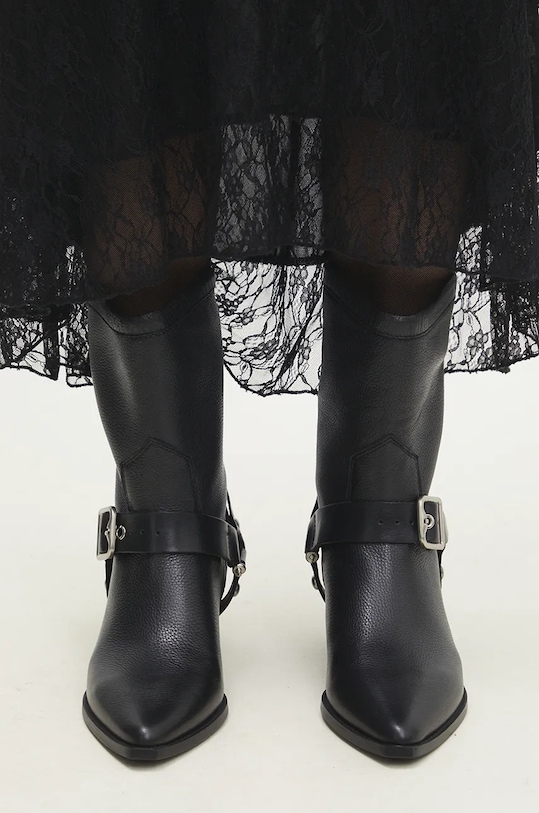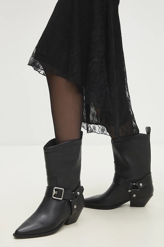 Эти ковбойские сапоги из коллекции Answear.LAB изготовлены из натуральной кожи. Их легко чистить и ухаживать за ними. - Заостренный, жесткий нос. - Петля сзади облегчает надевание и снятие обуви. - Жесткий задник стабилизирует пятку и удерживает ногу в обуви, не давая ей выскальзывать во время движения. - Текстильная внутренняя часть комфортна для ног и облегчает содержание обуви в чистоте. - Резиновая подошва прочная и устойчивая к повреждениям. - Модель с блочным каблуком. - Высота каблука: 5 см. - Длина вставки: 23 см. - Размеры указаны для размера: 37.