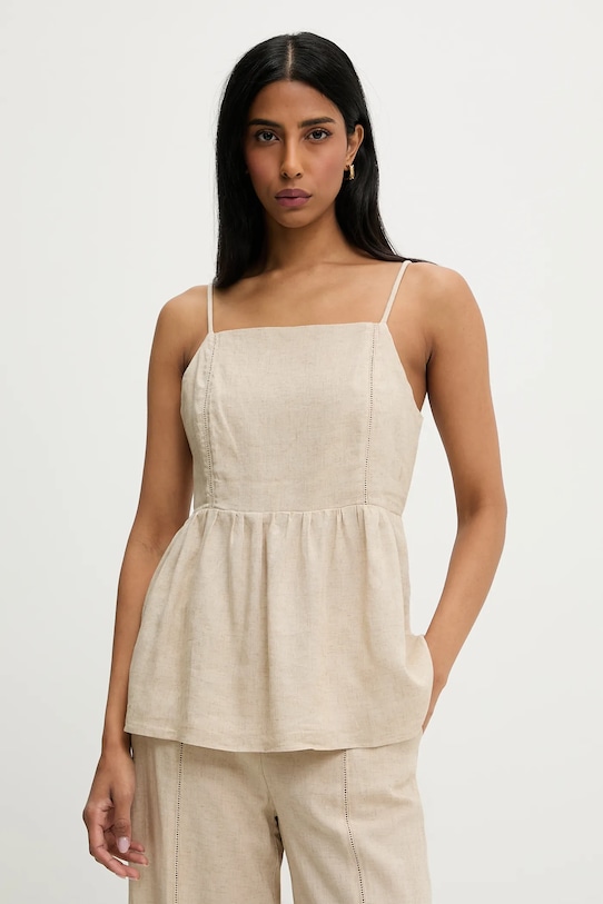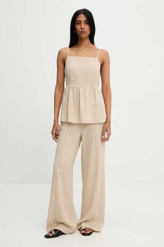 Этот комплект из коллекции Answear.LAB выполнен из гладкой ткани. Это лёгкий, воздушный материал, предназначенный для тёплого времени года. - Простой дизайн, не стесняющий движений. - Нерегулируемые, несъемные лямки. - Декоративная шнуровка на спине. - Модель с высокой талией, застежкой на пуговицы и молнию. - Два боковых накладных кармана. - Тонкая, неэластичная ткань. - Ширина талии: 36 см. - Ширина бедер: 56 см. - Высота талии: 34 см. - Длина штанины: 110 см. - Длина: 62 см. - Ширина под мышками: 45 см. - Размеры указаны для размера: S.