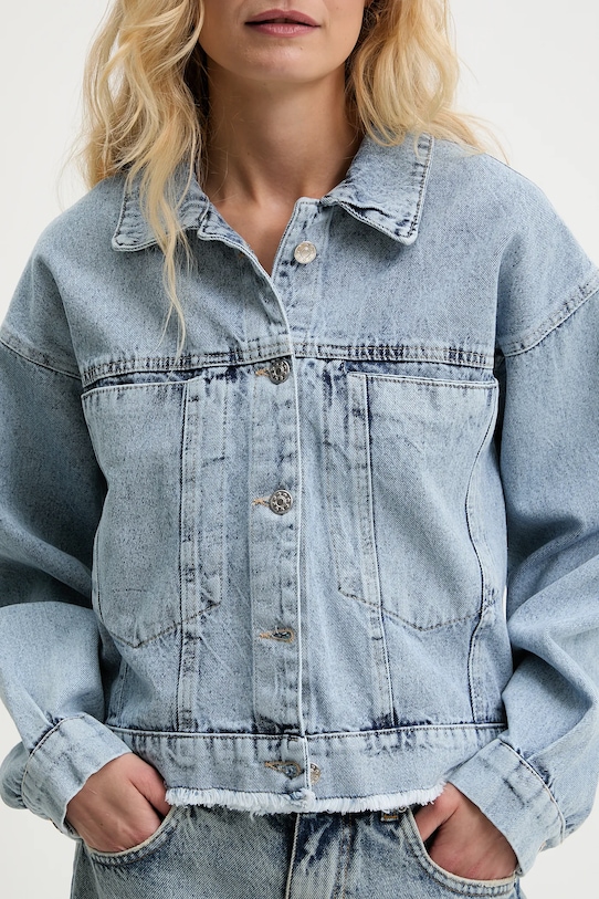 Эта куртка из коллекции Answear.LAB. Модель без подкладки выполнена из денима. Эта модель выполнена из исключительно комфортного и дышащего материала, идеально подходящего для теплого времени года. - Свободный крой, обеспечивающий полную свободу движений. - Крой рукава со спущенной линией плеча не ограничивает подвижность. - Удобная застежка на кнопки позволяет легко надевать и снимать. - Рукава застегиваются на пуговицы. - Два накладных кармана спереди. - Модель без подкладки. - Длина: 53 см. - Ширина под мышками: 55 см. - Размеры указаны для размера: S.