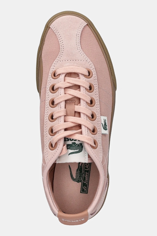 Эти кроссовки из коллекции Lacoste изготовлены из комбинации текстиля, замши и натуральной кожи. Модель оснащена рифленой подошвой для превосходного сцепления. - Круглый, слегка утолщенный носок. - Жесткий задник стабилизирует пятку и удерживает ногу в обуви, не давая ей выскальзывать во время движения. - Плоские шнурки устраняют давление на подъем стопы, обеспечивая хорошую посадку и комфорт. - Текстильная внутренняя часть комфортна для ног и облегчает содержание обуви в чистоте. - Съемная, легко моющаяся вставка. - Резиновая подошва прочная и устойчивая к повреждениям.