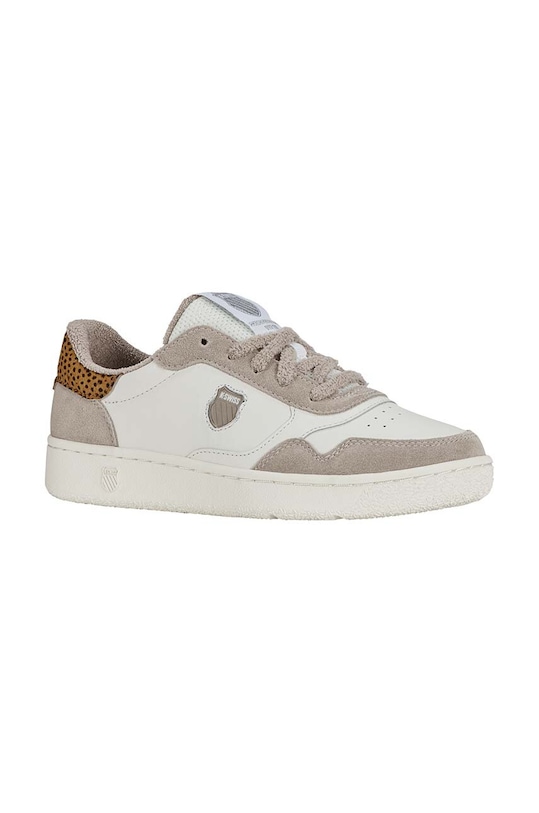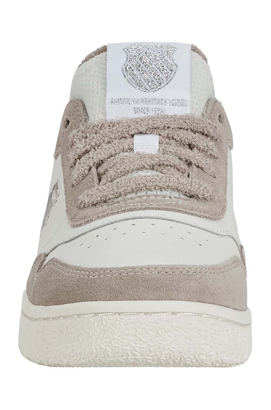 Кроссовки из коллекции K-Swiss. Изготовлены из комбинации натуральной кожи и замши, имеют гибкую резиновую подошву, прочную и устойчивую к повреждениям. - Круглый, жёсткий носок. - Текстильная внутренняя часть комфортна для ног и облегчает содержание обуви в чистоте. - Съемная стелька из пеноматериала амортизирует стопу и обеспечивает комфорт. - Усиленный задник с мягким наполнителем защищает пятку от истирания. - Классическая шнуровка позволяет индивидуально подогнать обувь по ноге. - Оригинальные шнурки. - Резиновая подошва прочная и устойчивая к повреждениям.