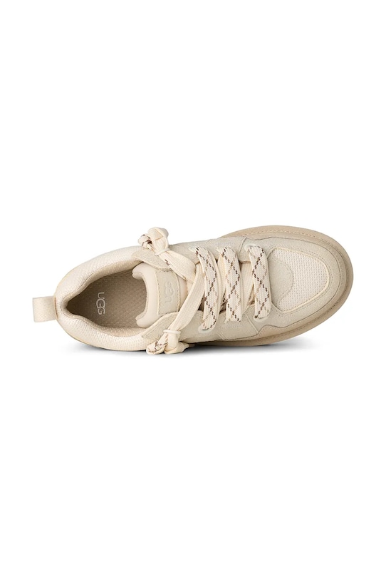 Эти кроссовки UGG изготовлены из комбинации замши и текстиля. Они оснащены прочной и износостойкой резиновой подошвой. - Изделие содержит переработанные волокнистые материалы. - Легкая и амортизирующая стелька из пеноматериала EVA. - Круглый нос. - Жесткий задник стабилизирует пятку и удерживает ногу в обуви, не давая ей выскальзывать во время движения. - Текстильная внутренняя часть комфортна для ног и облегчает содержание обуви в чистоте. - Классическая шнуровка позволяет индивидуально подогнать обувь по ноге. - Петля сзади облегчает надевание и снятие обуви.