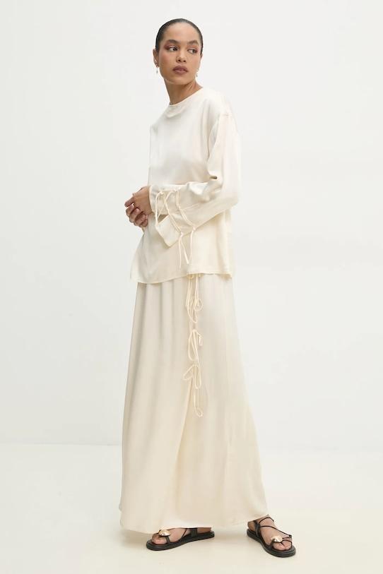 Эта блузка из коллекции Answear.LAB выполнена из гладкой атласной ткани. Модель выполнена из дышащего вискозного материала. - Свободный крой, обеспечивающий полную свободу движений. - Классический круглый вырез. - Длинный рукав. - Крой рукава со спущенной линией плеча не стесняет движений. - Декоративные разрезы на рукавах. - Потайная застежка-молния сзади. - Модель с декоративными завязками. - Тонкая, слегка эластичная ткань. - Длина рукава (от горловины): 68 см. - Длина: 65 см. - Ширина под мышками: 50 см. - Размеры указаны для размера: S.