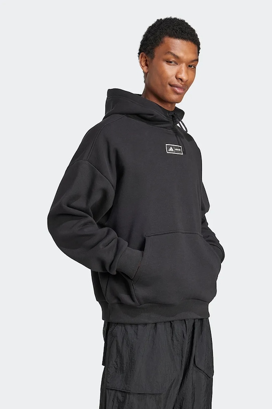 Толстовка с капюшоном из коллекции adidas. Изготовленная из гладкого, слегка эластичного трикотажа, эта коллекция является результатом сотрудничества adidas и Moon Boot. - Изделие содержит переработанные волокнистые материалы. - Большой размер. - Капюшон с завязками обеспечивает дополнительное тепло и защиту при необходимости. - Крой рукава со спущенной линией плеча не ограничивает подвижность. - Рукава и низ изделия отделаны удобными эластичными манжетами. - Практичный вставной карман-кенгуру спереди. - Теплая флисовая подкладка. - Нашивка с логотипом спереди.