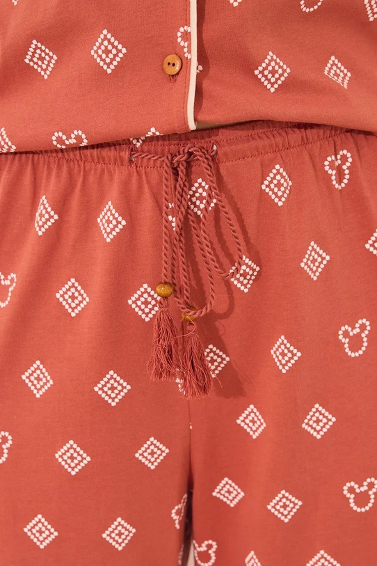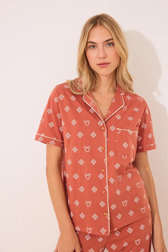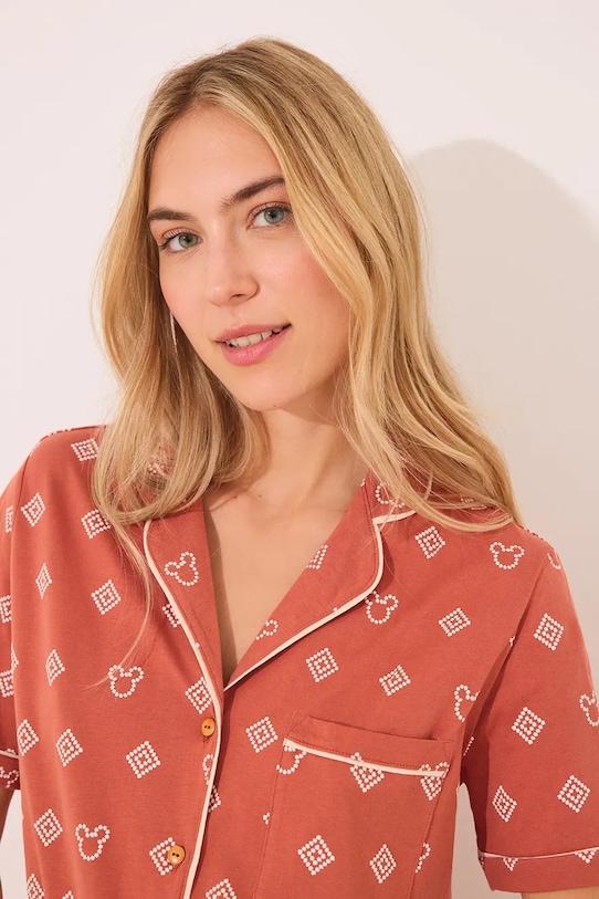 Пижама из коллекции Women'secret. Изготовлена из хлопкового трикотажа с рисунком. – Инициатива «Лучший хлопок». Изделия с этой маркировкой содержат не менее 50% хлопка от розничного продавца или бренда, участвующего в инициативе «Лучший хлопок» и инвестирующего в развитие BCI. - Пижама состоит из рубашки и брюк. - Простой дизайн, не стесняющий движений. - Модель с воротником. - Удобная застежка на кнопки позволяет легко надевать и снимать. - Короткий рукав. - Накладной карман на груди. - Эластичный пояс со шнурками. - Узорчатое трикотажное полотно.