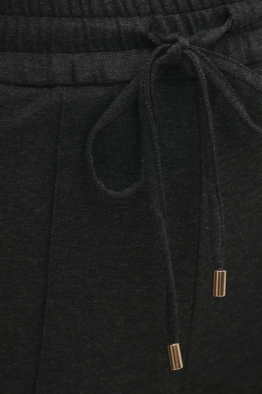 Брюки из коллекции Answear.LAB из тонкой, эластичной ткани. Эта модель выполнена из исключительно комфортного, дышащего материала. - Брюки слегка приталенные на бедрах. - Прямая нога полной длины. - Высокая талия с резинкой предотвращает скольжение во время движения. - Регулировка ширины талии с помощью шнурков. - Два боковых накладных кармана. - Ширина талии: 32 см. - Ширина бедер: 47 см. - Высота талии: 34 см. - Ширина штанины внизу: 20,5 см. - Ширина штанины: 28 см. - Длина внешней части штанины: 101 см. - Размеры указаны для размера: S.