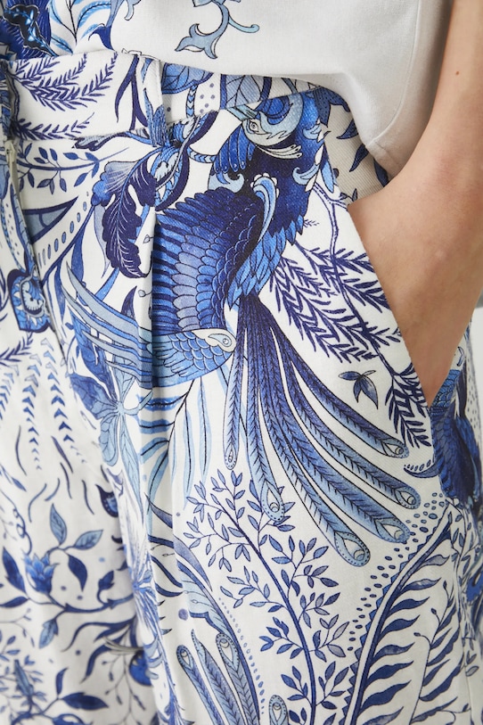 Брюки из коллекции Medicine. Изготовлены из смесовой льняной ткани. - Материал с добавлением льна обеспечивает комфорт и воздухопроницаемость. - Обычная посадка. - Обхват талии обычный. - Застежка на молнию и крючок. - Накладные карманы. - Декоративные закладки. - Штанина отутюживается в складку. - Узорчатая ткань. - Узор с растительными и животными мотивами. - Ширина талии: 40,5 см. - Ширина бедер: 56 см. - Высота талии: 26,7 см. - Ширина штанины внизу: 20,5 см. - Длина по внутреннему шву: 70 см. - Размеры указаны для размера: M.
