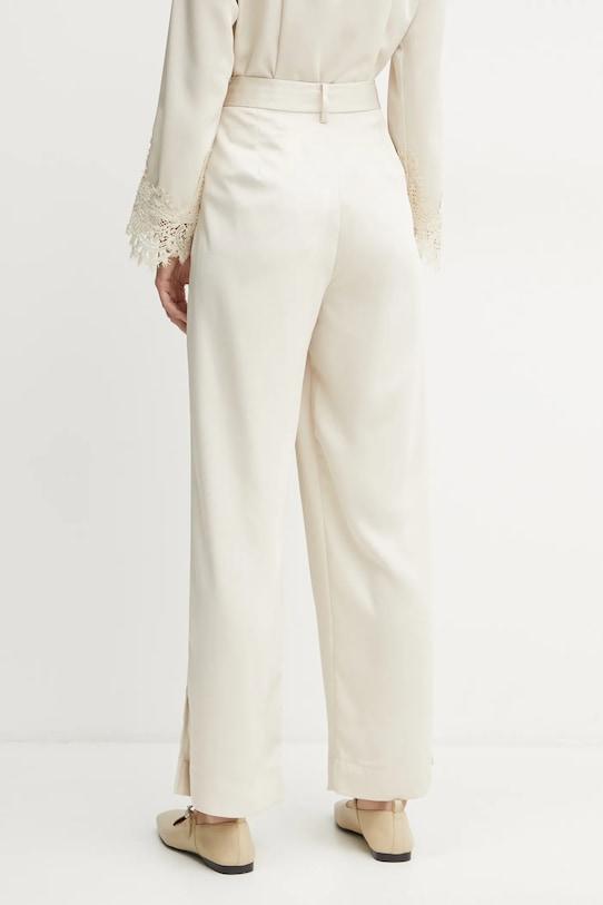 Брюки из коллекции Bruuns Bazaar изготовлены из гладкой ткани. Полиэстер обеспечивает повышенную устойчивость к сминанию. - Изделие содержит переработанные волокнистые материалы. - Модель с высокой талией, застежкой на молнию, пуговицы и крючок. - Два накладных кармана спереди. - Простой дизайн, не стесняющий движений. - Тонкая, неэластичная ткань. - Разрезы внизу штанин. - Ширина талии: 35 см. - Ширина бедер: 49 см. - Высота талии: 33 см. - Ширина штанины внизу: 24 см. - Длина внешней части штанины: 104 см. - Размеры указаны для размера: 36.