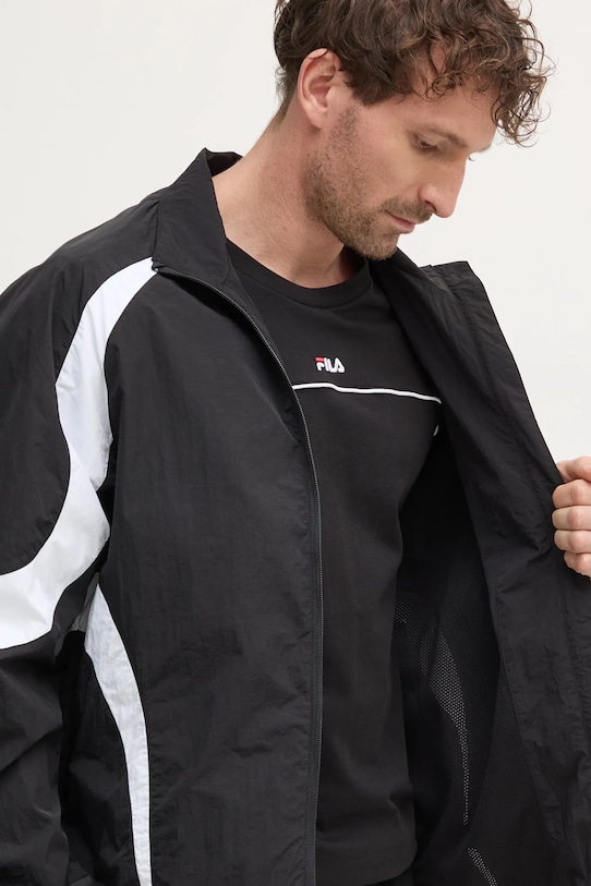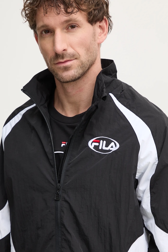 Куртка из коллекции Fila. Модель без подкладки выполнена из ткани с рисунком. Полиамид обеспечивает повышенную прочность. - Рукава реглан благодаря своей конструкции обеспечивают большую свободу движений. - Простой дизайн, не стесняющий движений. - Удобная застежка-молния сбоку позволяет легко надевать и снимать. - Рукава и нижний край отделаны удобными эластичными манжетами. - Внешние карманы на молнии. - Модель с сетчатой подкладкой. - Длина рукава (от горловины): 82 см. - Длина: 70 см. - Ширина под мышками: 58 см. - Размеры указаны для размера: M.