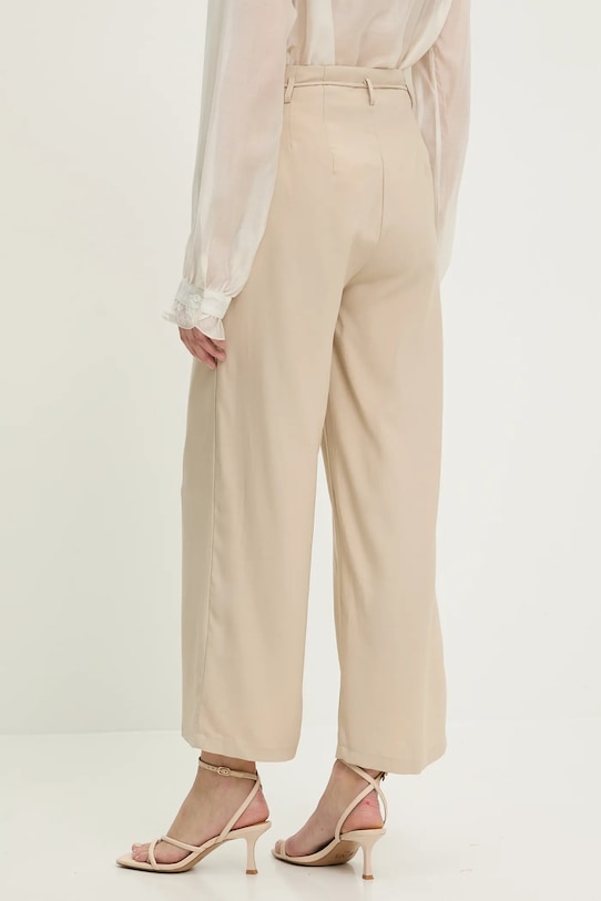 Брюки из коллекции Answear.LAB из тонкой, неэластичной ткани. Модель выполнена из дышащего материала с высоким содержанием вискозы. - Брюки свободные в области бедер и ягодиц. - Материал с декоративными складками. - Модель с высокой талией, застежкой на пуговицы и молнию. - Текстильный ремешок в комплекте. - Прямые, широкие штанины. - Два боковых накладных кармана. - Ширина талии: 35 см. - Ширина бедер: 52 см. - Высота талии: 33 см. - Длина по внутреннему шву: 68 см. - Длина внешней части штанины: 99 см. - Размеры указаны для размера: S.