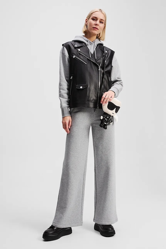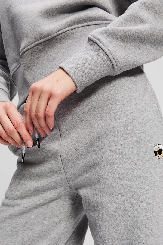 Спортивные брюки из коллекции Карла Лагерфельда. Изготовлены из сертифицированного органического хлопка. - Органический хлопок выращивается без использования вредных химикатов, химических пестицидов и искусственных удобрений. - Широкий фасон штанины. - Эластичный пояс со шнурками. - Накладные карманы. - Широкие штанины.
