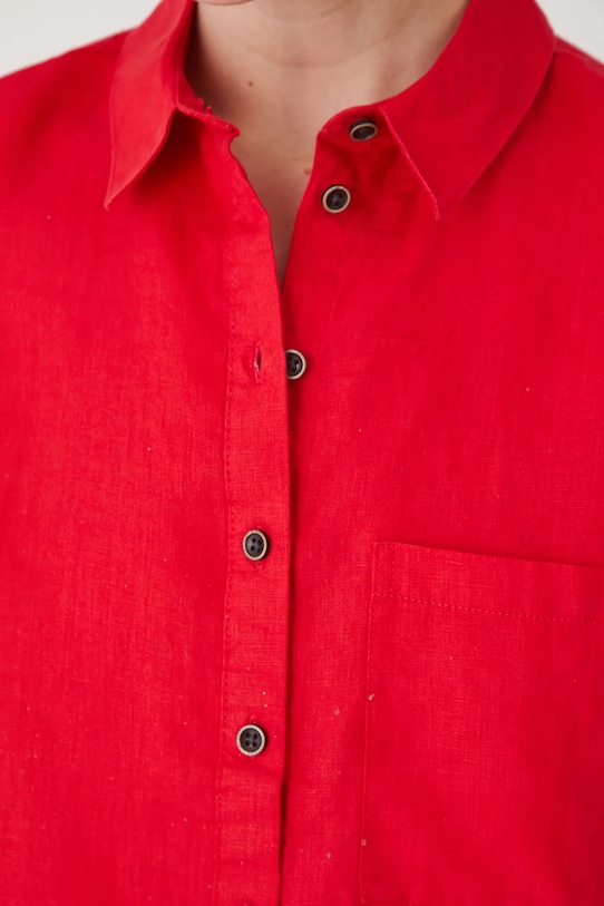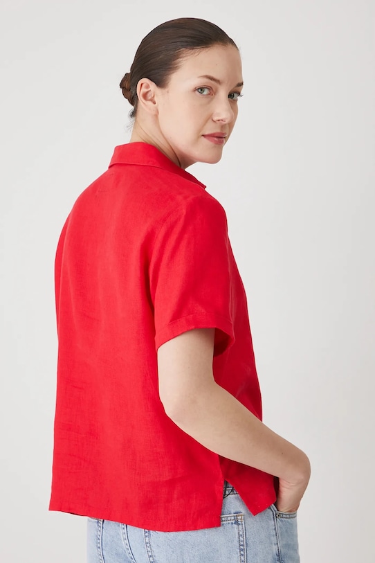 Рубашка из коллекции «Медицина». Изготовлена из льняной ткани, с воротником. - Материал с сертификатом OEKO-TEX Standard 100 гарантирует, что текстильные изделия, на которых он нанесен, не содержат вредных и потенциально опасных для человека и окружающей среды веществ. - Натуральный, воздушный и прочный материал, изготовлен из 100% льна. - Обычная посадка. - Короткий рукав. - Модель с воротником. - Застежка на пуговицы. - Накладной карман на груди. - Гладкая ткань. - Длина: 60 см. - Ширина под мышками: 53,5 см. - Размеры указаны для размера: S.