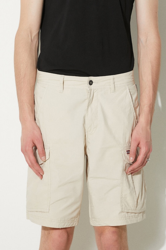 Шорты из коллекции Napapijri, выполненные из гладкой ткани. Изготовлены из исключительно комфортного хлопка. - Простой дизайн, не стесняющий движений. - Модель со стандартной талией, застежкой на пуговицы и молнию. - Два боковых накладных кармана. - Карманы для груза обеспечивают дополнительное место для хранения мелких предметов. - Тонкая, неэластичная ткань. - Ширина талии: 40 см. - Ширина бедер: 53 см. - Высота талии: 28 см. - Ширина штанины внизу: 26 см. - Ширина штанины: 31 см. - Длина штанины: 50 см. - Размеры указаны для размера: 32.