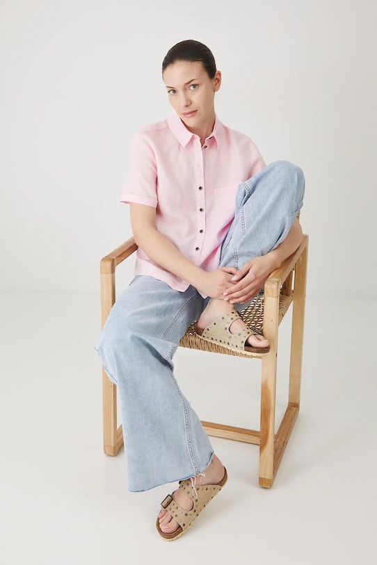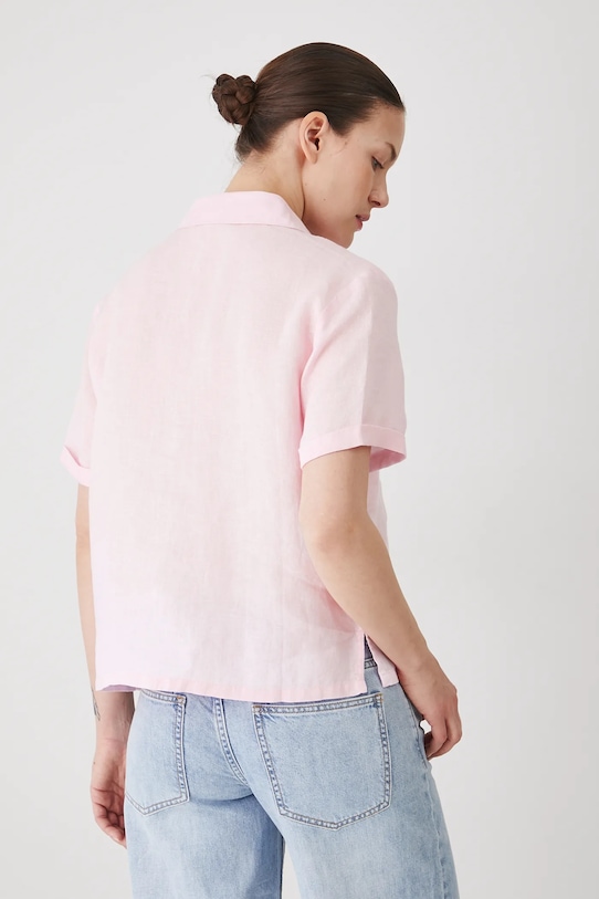 Рубашка из коллекции «Медицина». Изготовлена из льняной ткани, с воротником. - Материал с сертификатом OEKO-TEX Standard 100 гарантирует, что текстильные изделия, на которых он нанесен, не содержат вредных и потенциально опасных для человека и окружающей среды веществ. - Натуральный, воздушный и прочный материал, изготовлен из 100% льна. - Обычная посадка. - Короткий рукав. - Модель с воротником. - Застежка на пуговицы. - Накладной карман на груди. - Гладкая ткань. - Длина: 60 см. - Ширина под мышками: 53,5 см. - Размеры указаны для размера: S.