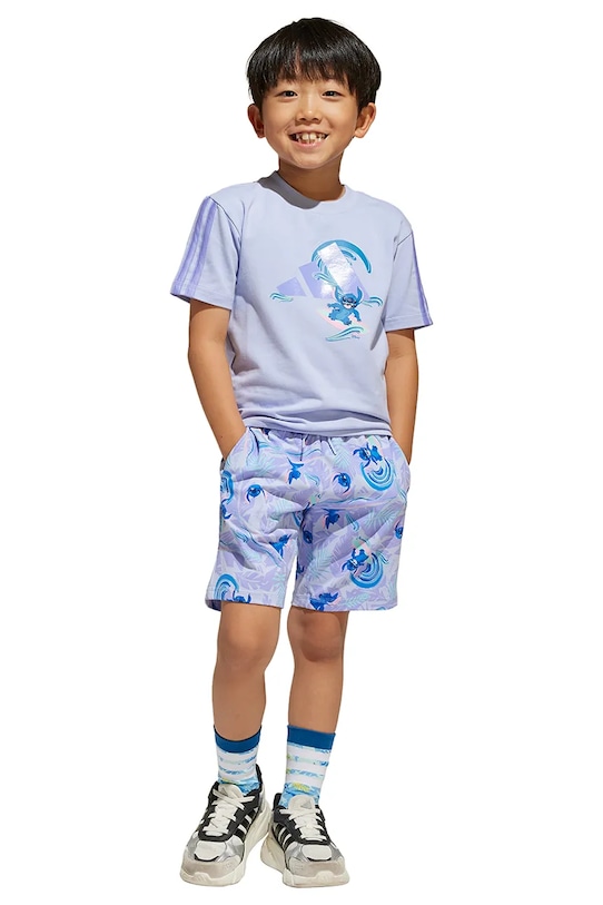 Этот детский комплект из коллекции adidas выполнен из тонкой, эластичной ткани. Модель выполнена из дышащего материала с высоким содержанием хлопка. - Простой дизайн, не стесняющий движений. - Круглый ребристый вырез. - Короткий рукав. - Модель с полосками. - Графический логотип бренда спереди. - Свободные шорты в области бедер и ягодиц. - Эластичный пояс и дополнительная регулировка ширины с помощью шнурков для предотвращения сползания во время движения. - Прямая нога полной длины. - Два боковых накладных кармана. - Узорчатое трикотажное полотно.