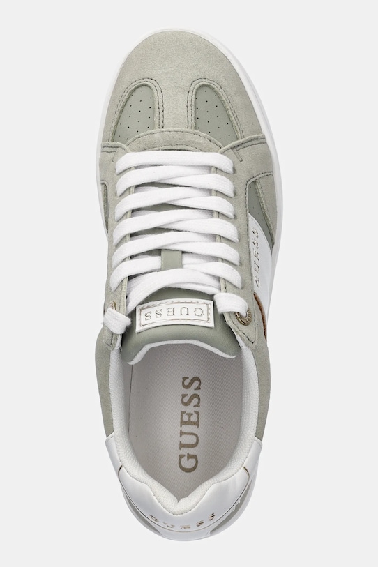 Кроссовки из коллекции Guess, изготовленные из комбинации замши и искусственной кожи, легкие и удобные, идеально подходят для повседневной носки. - Круглый, слегка утолщенный носок. - Жесткий задник стабилизирует пятку и удерживает ногу в обуви, не давая ей выскальзывать во время движения. - Плоские шнурки устраняют давление на подъем стопы, обеспечивая хорошую посадку и комфорт. - Текстильная внутренняя часть комфортна для ног и облегчает содержание обуви в чистоте. - Съемная, легко моющаяся вставка. - Резиновая подошва прочная и устойчивая к повреждениям.