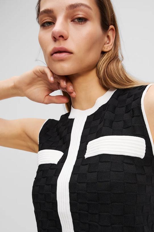 Этот жилет из коллекции Karl Lagerfeld выполнен из эластичного трикотажа средней плотности. Содержание нейлона повышает прочность. - Данное изделие частично изготовлено из переработанной вискозы. - Простой дизайн, не стесняющий движений. - Круглый ребристый вырез. - Модель без рукавов. - Имитация нагрудных карманов.