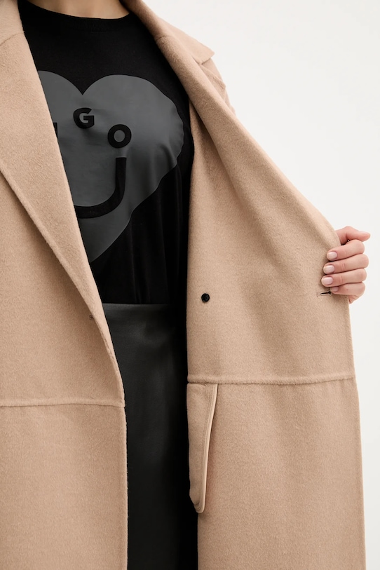 Пальто из коллекции HUGO. Эта неутеплённая модель выполнена из гладкого материала. Высокие терморегулирующие свойства шерсти позволяют согреться в холод и охладиться в жару. - Свободный крой, обеспечивающий полную свободу движений. - Неутепленная модель без подкладки. - Классические лацканы. - Двубортный пиджак с застежкой на пуговицы. - Погоны на плечах. - Крой рукава со спущенной линией плеча не ограничивает подвижность. - Длина рукава (от воротника): 75 см. - Длина: 122 см. - Ширина под мышками: 55 см. - Размеры указаны для размера: 36.
