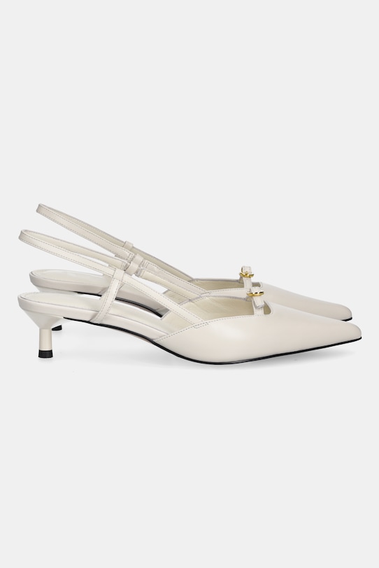 Эти туфли Answear.LAB изготовлены из натуральной кожи. Они оснащены кожаной стелькой, которая благодаря естественным порам предотвращает натирание, истирание и появление неприятного запаха. - Заостренный, жесткий нос. - Модель с открытой пяткой. - Резиновая подошва прочная и устойчивая к повреждениям. - В комплект модели входит дополнительная пара каблуков. - Кожаная стелька комфортна для стопы и предотвращает натирание, потертости и появление неприятного запаха. - Высота каблука: 4,5 см. - Длина вставки: 24 см. - Размеры указаны для размера: 36.