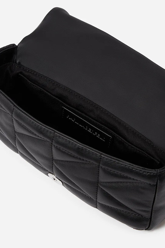 Маленькая сумочка из коллекции Карла Лагерфельда. Модель на молнии, выполнена из комбинации синтетического материала и натуральной кожи. - Модели линейки Karl Cares изготовлены из материалов, произведенных в ходе устойчивого, экологически чистого процесса производства. - Клапан застегивается на магнит. - Входящий в комплект тканевый чехол защищает изделие от пыли. - Модель на подкладке. - Не подходит для формата А4. - Несъемный, регулируемый ремешок. - Внутренний накладной карман. - Глубина: 6 см. - Высота: 11 см. - Ширина у основания: 21 см.