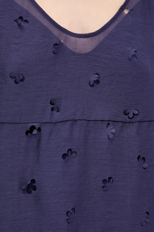 Это платье из коллекции Stine Goya выполнено из тонкой, неэластичной ткани. Полиэстер обеспечивает высокую устойчивость к сминанию. - Полиэстер, использованный при изготовлении этой модели, полностью переработан. - Расклешенный крой. - В комплект модели входит нижняя юбка. - Классический круглый вырез. - Короткие, пышные рукава. - Рукава реглан благодаря своей конструкции обеспечивают большую свободу движений. - Модель без застежки. - Декоративные вырезы. - Длина: 130 см. - Ширина под мышками: 48 см. - Размеры указаны для размера: S.