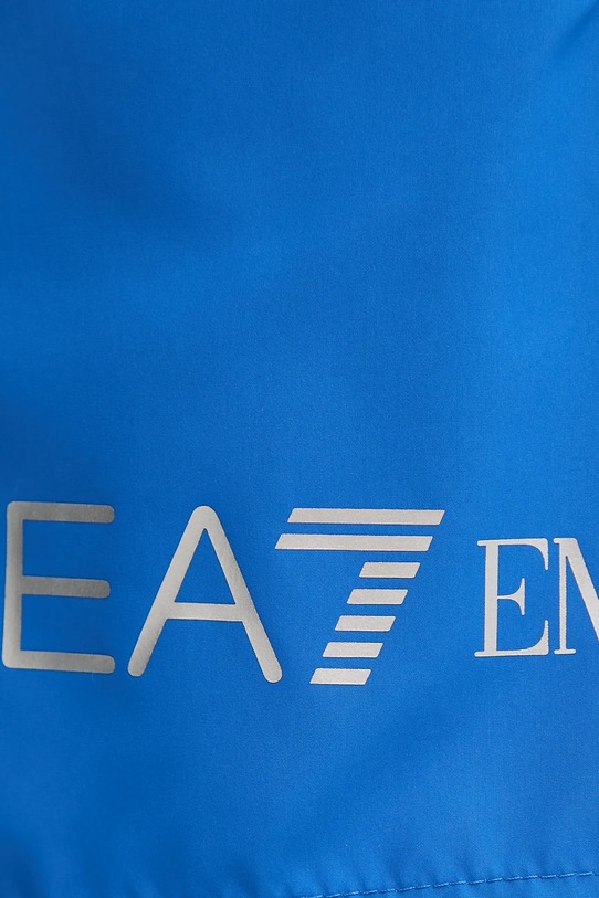 Плавки-шорты из коллекции EA7 Emporio Armani. Изготовлены из тонкого, неэластичного полиэстера, обеспечивающего высокую устойчивость к сминанию. - Простой дизайн, не стесняющий движений. - Эластичный пояс и дополнительная регулировка ширины с помощью шнурков для предотвращения сползания во время движения. - Два боковых накладных кармана. - Сетчатая внутренняя подкладка для дополнительного комфорта. - Плоские швы защищают кожу от ссадин и раздражения. - Модель с принтом. - Ширина талии: 39 см. - Длина: 37 см. - Размеры указаны для размера: M.