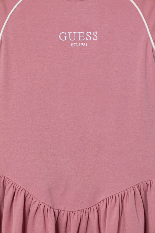 Это детское платье из коллекции Guess выполнено из трикотажного полотна. Высокоэластичный материал обеспечивает полную свободу движений. - Изготовлено из экологически чистого материала LENZING ECOVERO. LENZING ECOVERO производится из органической целлюлозы и древесной массы, используя на 50% меньше воды, чем популярная вискоза. - Расклешенный крой. - Короткий рукав. - Классический круглый вырез. - Логотип бренда вышит спереди. - Тонкий, эластичный трикотаж. - Длина: 66 см. - Ширина под мышками: 30 см. - Размеры указаны для роста: 125-135 см.