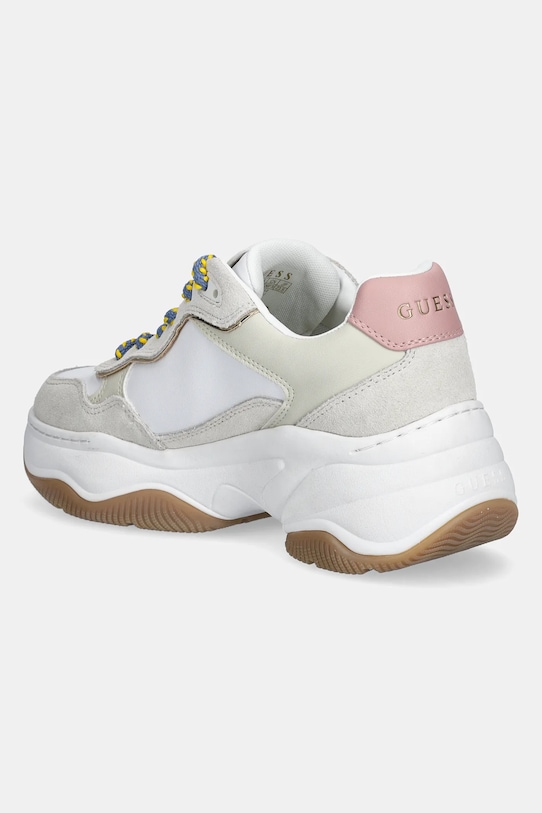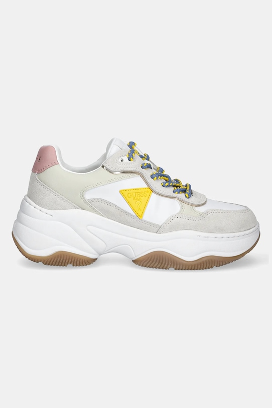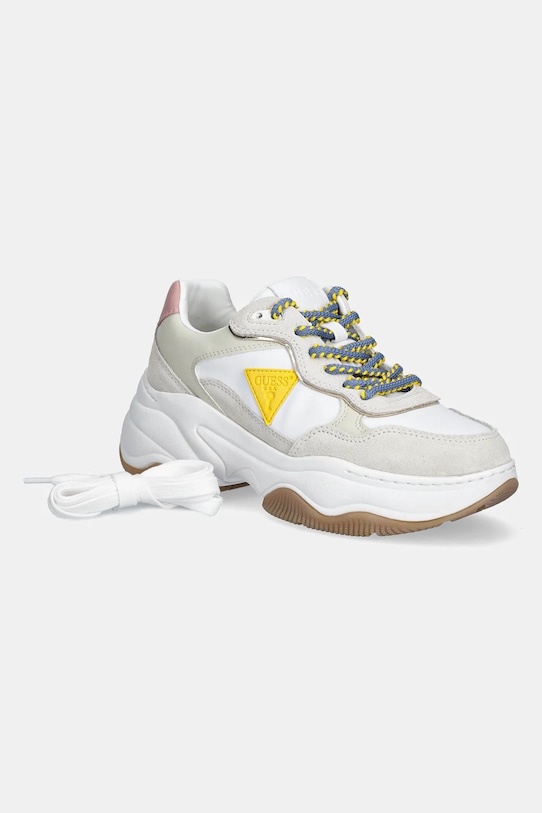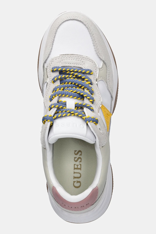 Кроссовки из коллекции Guess. Изготовлены из комбинации натуральной и искусственной кожи. - Круглый, жёсткий носок. - Плоские шнурки устраняют давление на подъем стопы, обеспечивая хорошую посадку и комфорт. - Классическая шнуровка позволяет индивидуально подогнать обувь по ноге. - Текстильная внутренняя часть комфортна для ног и облегчает содержание обуви в чистоте. - Жесткий задник стабилизирует пятку и удерживает ногу в обуви, не давая ей выскальзывать во время движения. - Рельефный логотип сверху. - В комплект входит дополнительная пара шнурков.
