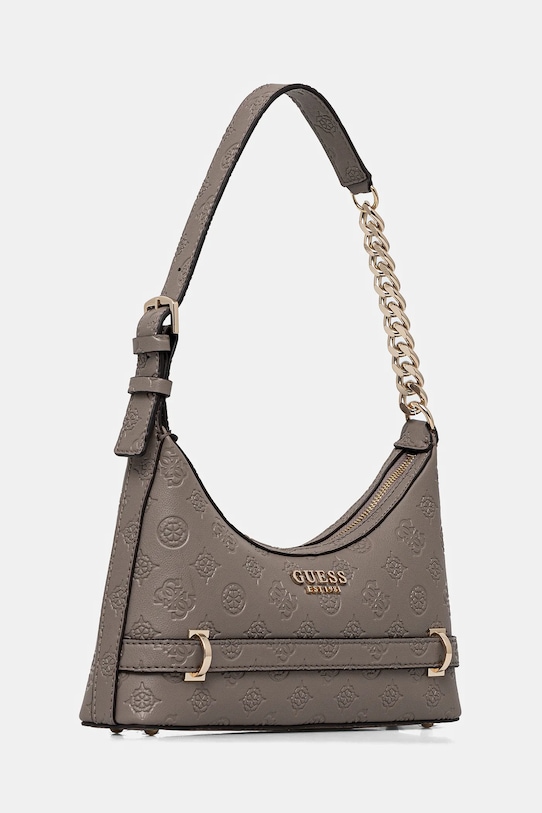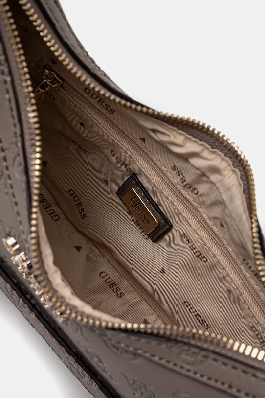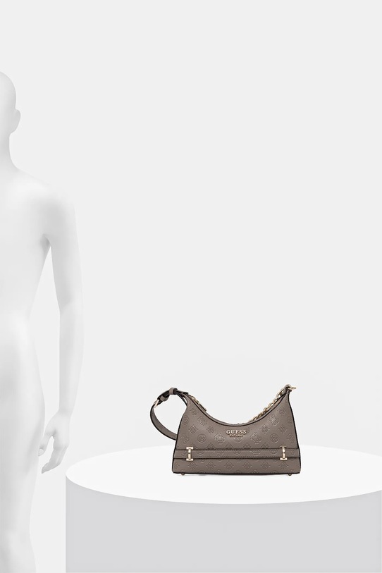 Небольшая сумочка из коллекции Guess. Модель на молнии, выполнена из экокожи. - Застежка-молния. - Внутренний карман на молнии. - Внутренние отделения для карт. - Карман на молнии на задней стороне позволяет безопасно хранить телефон или другие мелкие предметы. - Модель на подкладке. - Не подходит для формата А4. - Имеет регулируемую ручку. - Модель оснащена металлическими ножками, защищающими дно сумки. - Входящий в комплект тканевый чехол защищает изделие от пыли. - Глубина: 5,5 см. - Высота: 11 см. - Ширина у основания: 27 см.