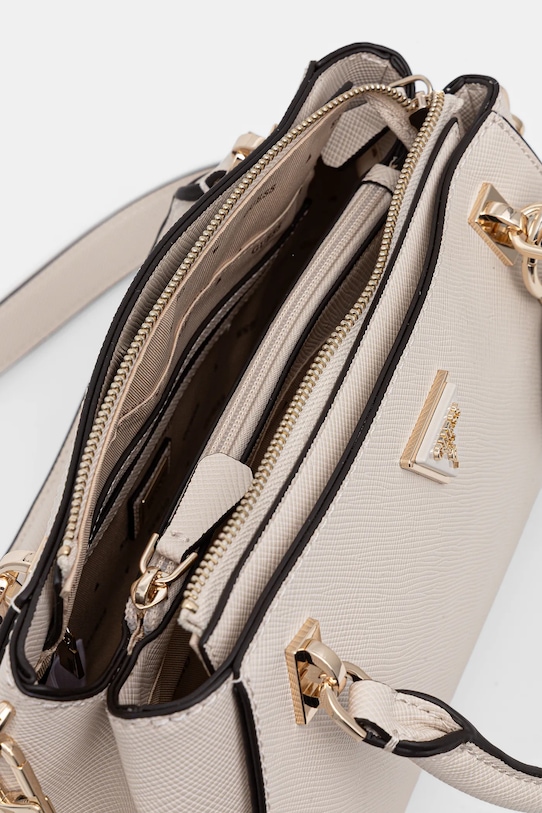 Сумка-шоппер среднего размера из коллекции Guess. Сумка на молнии изготовлена из искусственной кожи, которую легко чистить и ухаживать. - Застежка-молния. - Имеет три отделения, одно из которых застегивается на молнию. - Внутренние карманы. - Карман на молнии на задней стороне позволяет безопасно хранить телефон или другие мелкие предметы. - Имеет ручки и съемный регулируемый ремень. - Не подходит для формата А4. - Входящий в комплект тканевый чехол защищает изделие от пыли. - Глубина: 11 см. - Высота: 24 см. - Ширина у основания: 32 см.