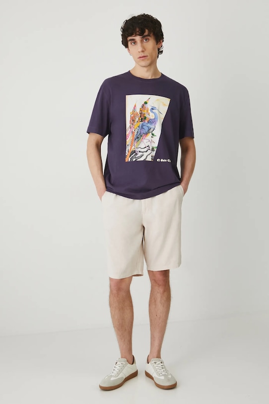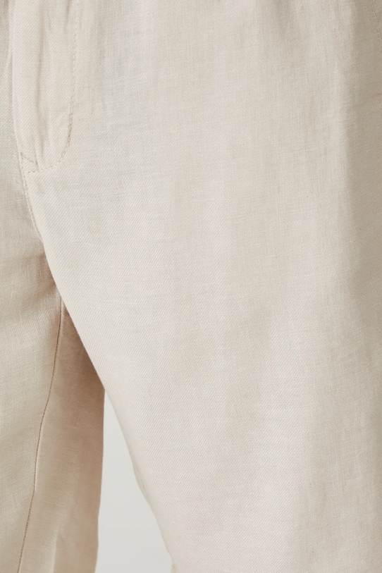 Шорты из коллекции Medicine. Изготовлены из смесовой льняной ткани. - Материал с добавлением льна обеспечивает комфорт и воздухопроницаемость. - Обычная посадка. - Эластичный пояс со шнурками. - Застежка на пуговицы и молнию. - Накладные карманы. - Меланжевая ткань. - Ткань саржевого переплетения. - Ширина талии (до растягивания): 44 см. - Ширина талии (после растяжения): 49 см. - Ширина бедер: 58 см. - Высота талии: 28,8 см. - Ширина штанины внизу: 27,4 см. - Длина по внутреннему шву: 25 см. - Размеры указаны для размера: L.