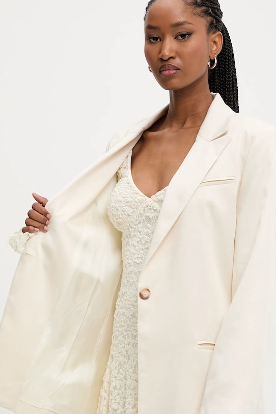 Этот блейзер из коллекции Answear.LAB выполнен из гладкой ткани. Эта модель выполнена из исключительно комфортного и дышащего материала, идеально подходящего для теплого времени года. Лиоцелл — это шёлкоподобная ткань из древесной целлюлозы. Этот материал производится экологичным способом, без использования токсичных веществ. - Простой дизайн, не стесняющий движений. - В плечах вшиты подкладки. - Классические лацканы. - Модель на подкладке. - Застежка на пуговицы. - Длина: 74 см. - Ширина под мышками: 50 см. - Размеры указаны для размера: S.