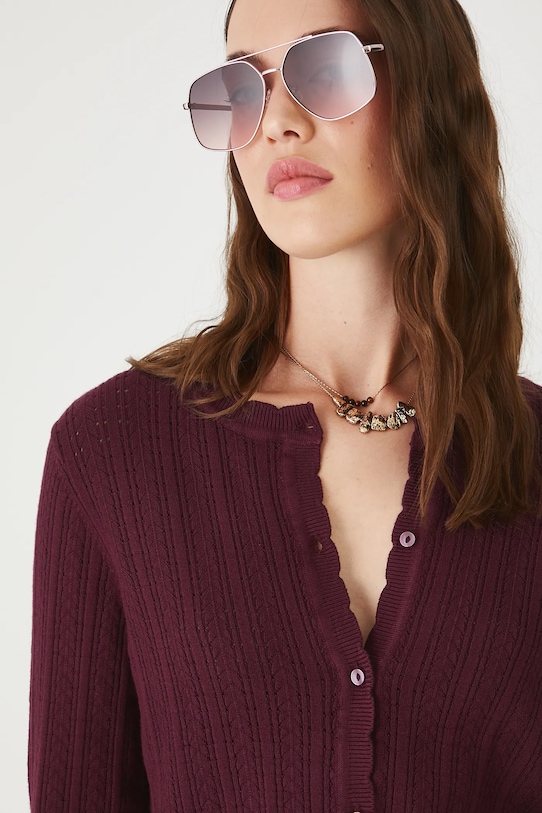 Кардиган из коллекции Medicine. Этот кардиган с круглым вырезом выполнен из гладкого трикотажа. - Материал с сертификатом OEKO-TEX Standard 100 гарантирует, что текстильные изделия, на которых он нанесен, не содержат вредных и потенциально опасных для человека и окружающей среды веществ. - Обычная посадка. - Длинный рукав. - Круглый вырез. - Застежка на пуговицы. - Декоративная отделка. - Материал с текстурой. - Гладкая трикотажная ткань. - Длина рукава: 61 см. - Длина: 53 см. - Ширина груди: 46 см. - Размеры указаны для размера: S.