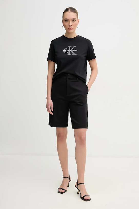 Шорты из коллекции Calvin Klein Jeans, выполненные из тонкого, высокоэластичного трикотажа. Модель выполнена из исключительно комфортного материала с высоким содержанием вискозы. - Этот продукт содержит не менее 50% вискозы в сочетании с Circulose, которая производится из переработанных текстильных отходов. - Модель изготовлена из гибкого материала. - Модель с высокой талией, застежкой на молнию и крючок. - Встроенные шлевки позволяют надеть ремень, чтобы шорты не сползали во время движения. - Два боковых накладных кармана. - Имитация карманов на ягодицах.