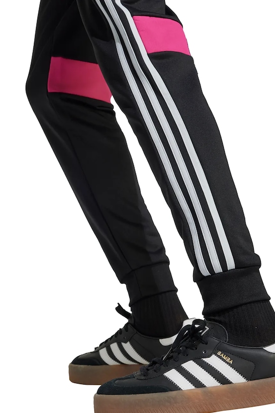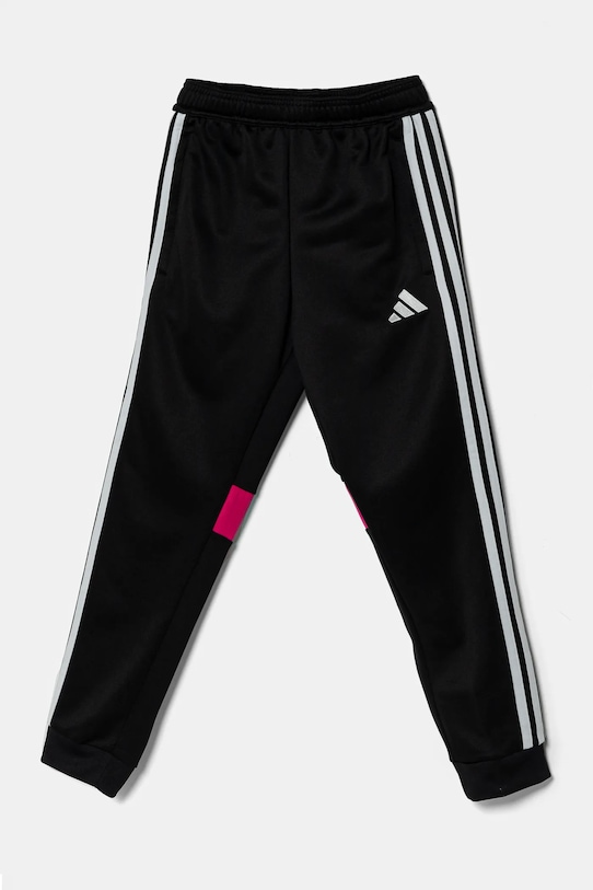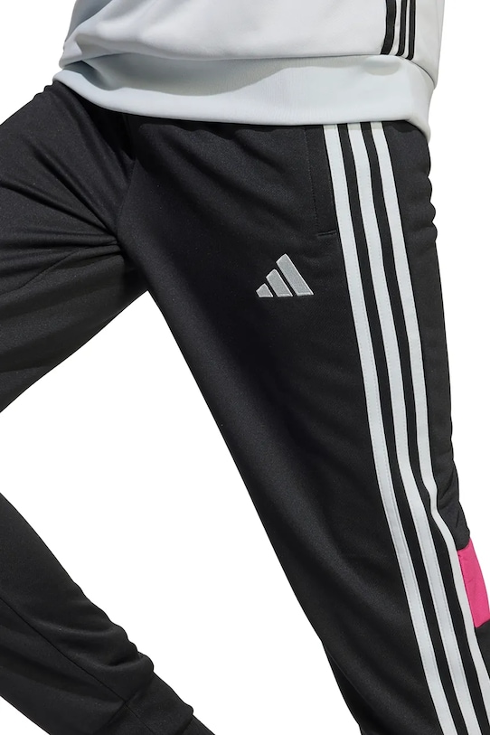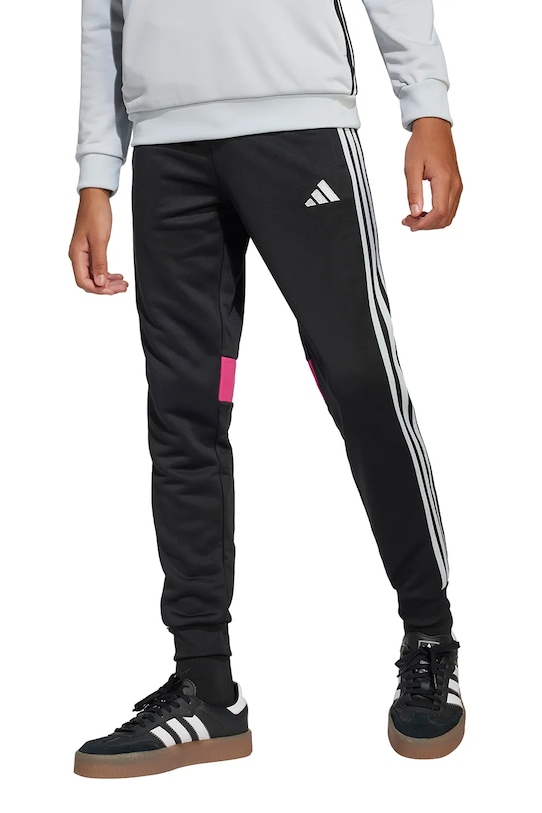 Эти детские спортивные брюки из коллекции adidas Performance изготовлены из слегка эластичного материала для комфорта и свободы движений. Полиэстер обеспечивает высокую устойчивость к сминанию. - Брюки свободные в области бедер и ягодиц. - Свободный покрой, не стесняющий движений. - Эластичный пояс и дополнительная внутренняя регулировка ширины с помощью шнурков для предотвращения сползания во время движения. - Ножки отделаны удобными эластичными манжетами. - Два прорезных боковых кармана на молнии. - Модель с полосками. - Логотип бренда вышит спереди.