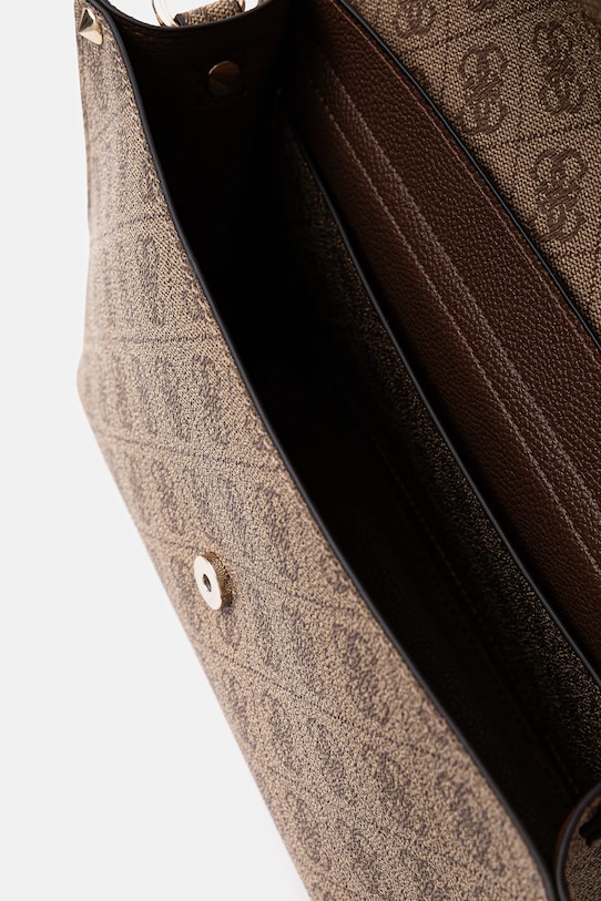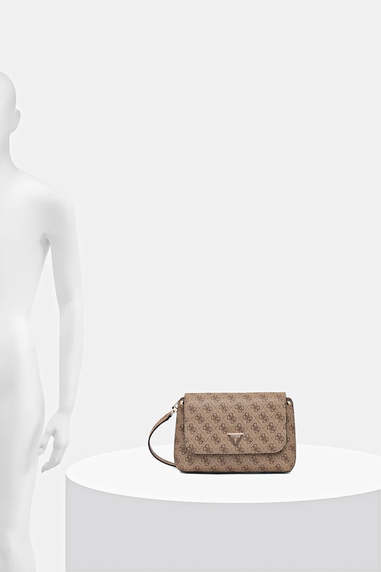 Небольшая сумочка из коллекции Guess. Модель с застёжкой-крючком, выполнена из синтетического материала. - Клапан застегивается на магнит. - Внутренний накладной карман для телефона. - Модель без подкладки. - Съемный регулируемый ремешок. - Не подходит для формата А4. - Модель оснащена металлическими ножками, защищающими дно сумки. - Входящий в комплект тканевый чехол защищает изделие от пыли. - Минимальная длина ремешка: 104 см. - Максимальная длина ремня: 122 см. - Глубина: 8 см. - Высота: 16 см. - Ширина у основания: 25 см.