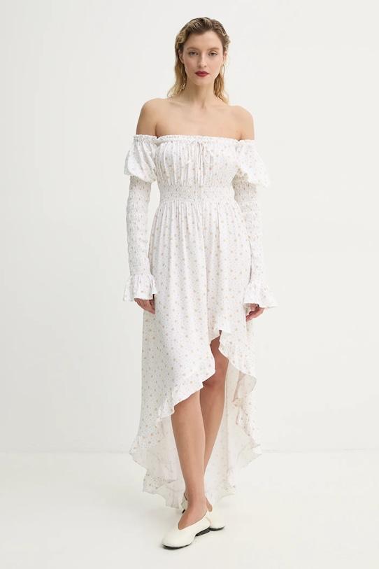 Платье из коллекции The Sleeper, выполненное из ткани с узором. Эта модель выполнена из исключительно комфортного материала с высоким содержанием вискозы. - Расклешенный крой. - Испанский вырез. - Длинный рукав. - Модель с регулируемой шнуровкой. - Асимметричные, свободные края. - Модель с эластичным поясом. - Модель без подкладки. - Тонкая, неэластичная ткань. - Длина рукава: 70,5 см. - Длина спереди: 65 см. - Длина спинки: 132 см. - Ширина под мышками: 33 см. - Ширина талии: 33 см. - Размеры указаны для размера: S.