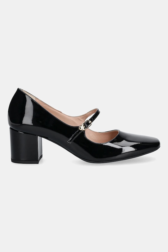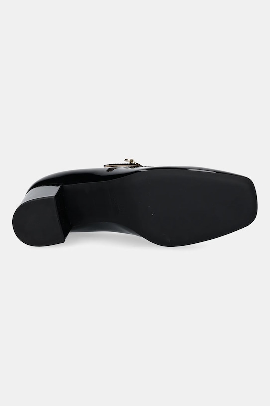 Эти туфли из лакированной кожи из коллекции Love Moschino имеют кожаную подкладку, которая обеспечивает комфорт и предотвращает натирание, потертости и неприятные запахи. - Входящий в комплект тканевый чехол защищает изделие от пыли. - Усиленный задник стабилизирует пятку и удерживает ногу в обуви, не давая ей выскользнуть во время движения. - Квадратный, жёсткий носок. - Застежка-пряжка со штифтом для индивидуальной подгонки. - Модель с блочным каблуком. - Высота каблука: 5 см. - Длина вставки: 24 см. - Размеры указаны для размера: 37 см.