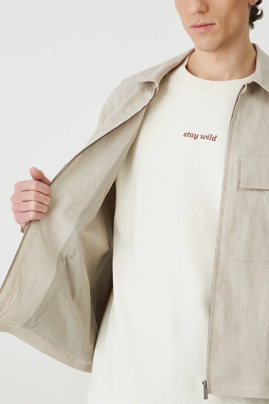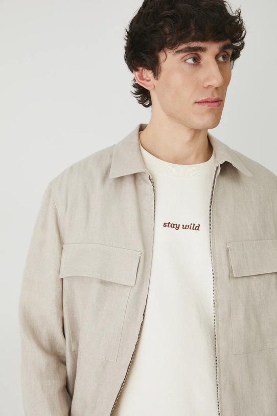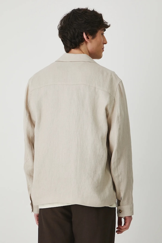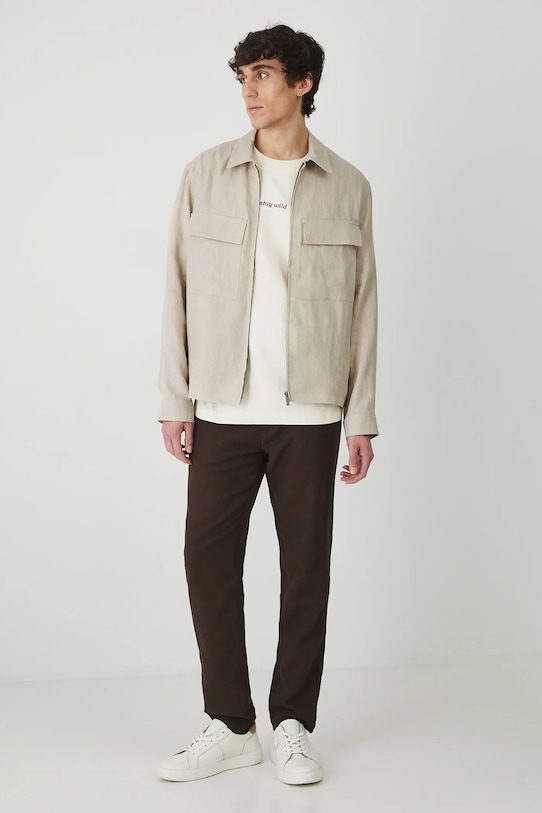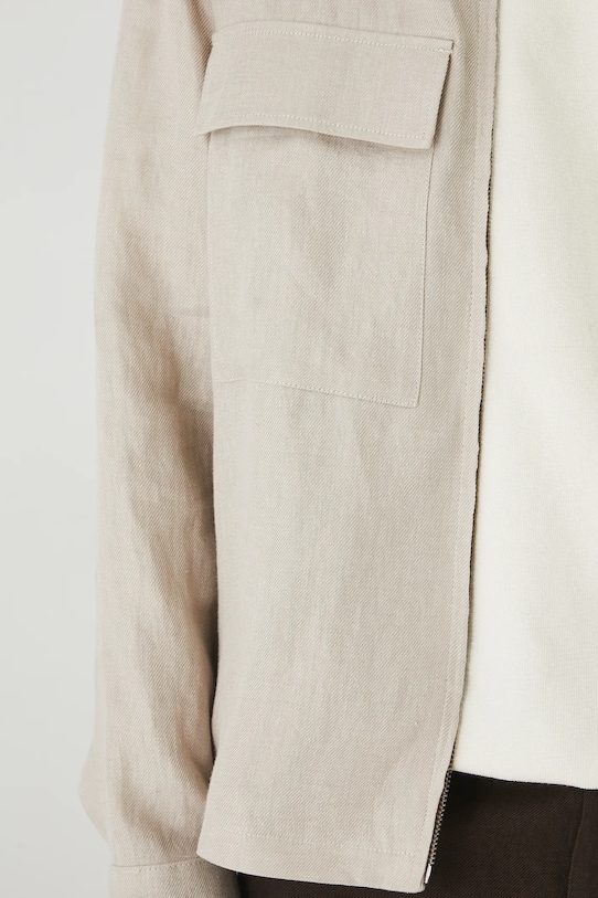 Куртка из коллекции «Медицина». Эта неутеплённая модель выполнена из льняного материала. - Натуральный, воздушный и прочный материал, изготовлен из 100% льна. - Простой дизайн. - Длинный рукав. - Манжеты на пуговицах. - Модель с воротником. - Застежка-молния. - Два нагрудных кармана с декоративными клапанами. - Неутепленная модель с подкладкой. - Ткань саржевого переплетения. - Меланжевый материал. - Длина рукава: 65 см. - Длина: 70 см. - Ширина груди: 59 см. - Ширина плеч: 49,7 см. - Размеры указаны для размера: L.