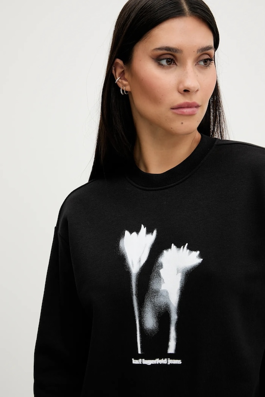 Эта толстовка из коллекции Karl Lagerfeld Jeans выполнена из тонкой, эластичной ткани. Материал мягкий и приятный на ощупь. - Изделие содержит органический хлопок и переработанные полиэфирные волокна. - Свободный крой, обеспечивающий полную свободу движений. - Длинный рукав. - Крой рукава со спущенной линией плеча не ограничивает подвижность. - Классический круглый вырез. - Рукава и низ изделия отделаны удобными эластичными манжетами. - Модель с принтом. - Длина: 57 см. - Ширина под мышками: 58 см. - Размеры указаны для размера: S.