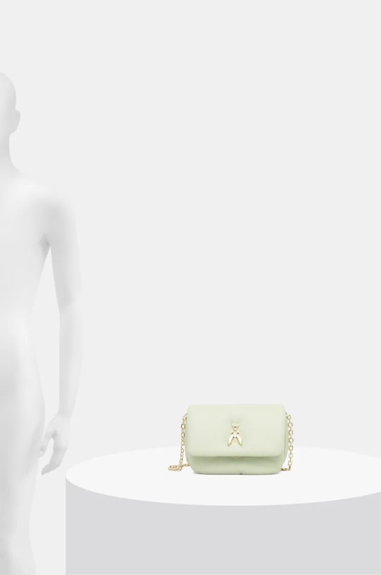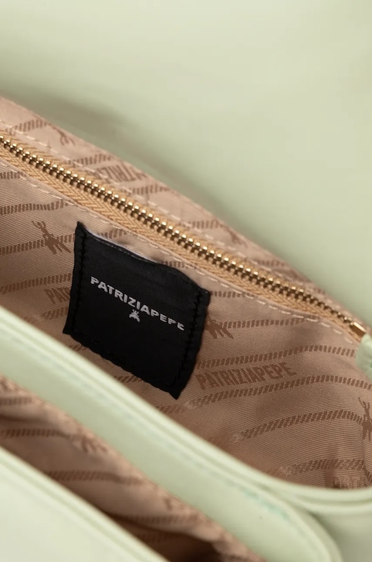 Небольшая сумочка из коллекции Patrizia Pepe. Модель на молнии из натуральной кожи. - Модель из линейки Go Green, изготовленная из волокон, полученных с использованием экологичных производственных процессов, что снижает их воздействие на окружающую среду. - Двухкамерная модель. - Внутренний карман на молнии. - Клапан застегивается на кнопку. - Несъемный, нерегулируемый ремешок. - Не подходит для формата А4. - Входящий в комплект тканевый чехол защищает изделие от пыли. - Глубина: 8 см. - Высота: 13 см. - Ширина у основания: 20 см.