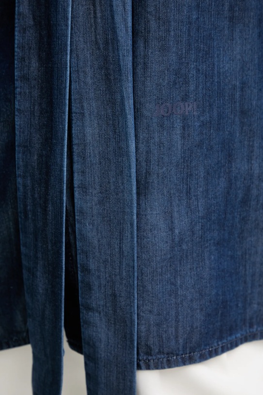 Рубашка из коллекции Joop! из денима. Изготовлена из дышащего лиоцелла. - Лиоцелл — это волокно из древесной целлюлозы, которое производится в ходе экологически устойчивого процесса производства, без использования токсичных веществ. - Рубашка свободного кроя отличается свободным кроем, обеспечивает комфорт и не стесняет движений. - Застежка на пуговицы. - Модель с переплетом. - Длинный рукав. - Мягкие манжеты с застежкой на пуговицы. - Длина: 67 см. - Длина рукава: 62 см. - Ширина под мышками: 52 см. - Размеры указаны для размера: 36.