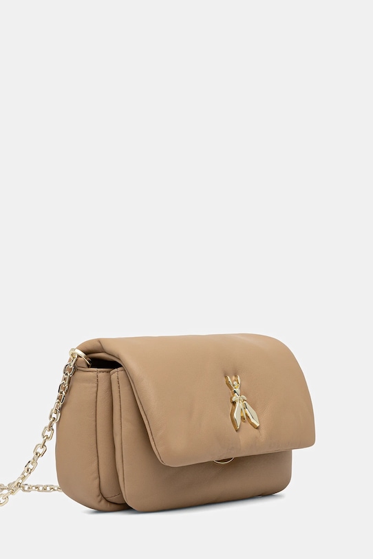 Небольшая сумочка из коллекции Patrizia Pepe. Модель на молнии из натуральной кожи. - Модель из линейки Go Green, изготовленная из волокон, полученных с использованием экологичных производственных процессов, что снижает их воздействие на окружающую среду. - Двухкамерная модель. - Внутренний карман на молнии. - Клапан застегивается на кнопку. - Несъемный, нерегулируемый ремешок. - Не подходит для формата А4. - Входящий в комплект тканевый чехол защищает изделие от пыли. - Глубина: 8 см. - Высота: 13 см. - Ширина у основания: 20 см.