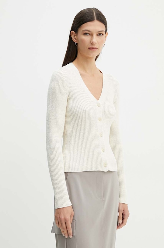 Кардиган из коллекции Theory. Изготовлен из хлопковой ткани. - Удобная застежка на кнопки позволяет легко надевать и снимать. - Приталенный крой, подчеркивающий силуэт. - Трикотажное полотно в рубчик. - Длина: 52 см. - Длина рукава: 61 см. - Ширина под мышками: 40 см. - Размеры указаны для размера: S.